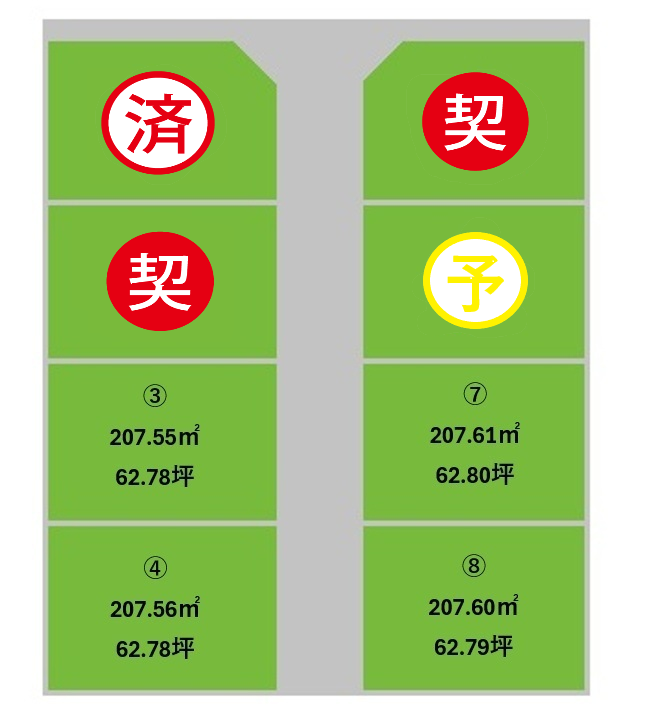 | No.8 | 販売中 | 1100万円 | 207.60㎡ | 62.79坪 |