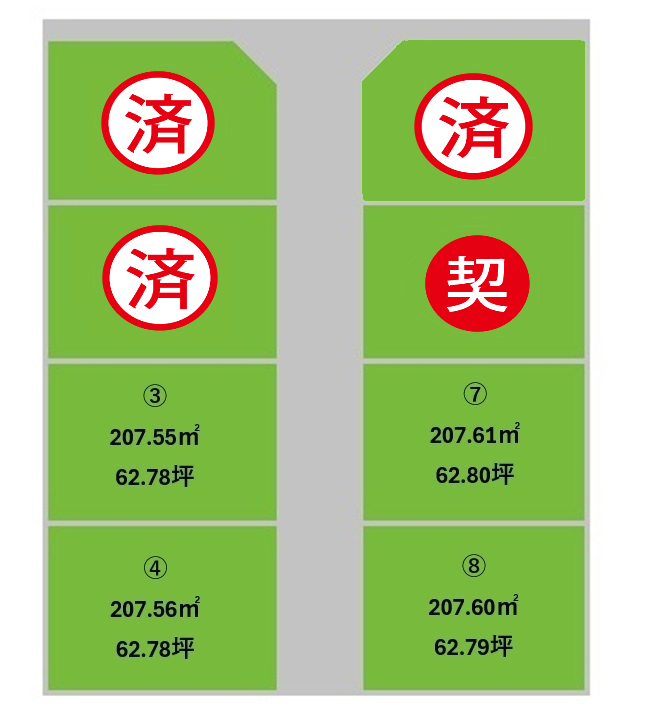 | No.8 | 販売中 | 1100万円 | 207.60㎡ | 62.79坪 |